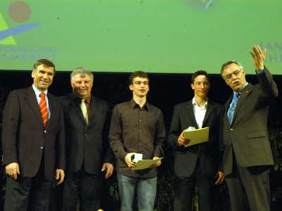 Zur diesjährigen Ehrung der Landessportjugend Rheinland-Pfalz waren die Treis-Kardener Ruderer Sebastian Daufer und Thorben Prigge nach Mainz eingeladen worden. Für ihre Erfolge bei den Deutschen Jugendmeisterschaften in Brandenburg (Gold im Leichtgewichts Vierer und Achter der 17 und 18 jährigen) wurden sie mit der silbernen Ehrennadel des Landessportbundes Rheinland-Pfalz ausgezeichnet. Beide Sportler sind Schüler des Kurfürst-Balduin Gymnasiums Münstermaifeld und haben über die Kooperation zwischen Schule und Verein das Rudern erlernt. Grundlage ihrer Erfolge ist ein tägliches, ganzjähriges Training. |