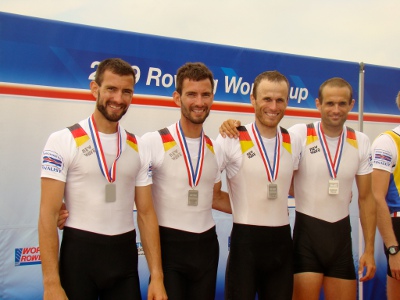 Der Leichtgewichts Männer Vierer ohne Steuermann vom Bundesstützpunkt Saarbrücken, mit Jost Schömann-Finck an Bord, belegt beim ersten World Cup in Banyoles den zweiten Platz hinter Olympiasieger Dänemark. Mit einem Sieg im Vorlauf und der schnellsten Zeit aller sich am Start befindenden Vierer startete das Boot von Trainer Uwe Bender in die World Cup Saison 2009. Durch den gewonnen Vorlauf qualifizierte sich das deutsche Boot, in dem neben dem Treis-Kardener Ruderer Jost Schömann-Finck auch noch sein Bruder Matthias sowie Jochen und Martin Kühner sitzen, direkt für das Finale am Sonntag. Hier traf man wie schon auf der Internationalen Regatta in Essen auf den Olympiasieger Dänemark sowie auf Boote aus Großbritannien, Spanien und zwei italienische Mannschaften. Vom Start weg bestimmte das deutsche Team das Renngeschehen, lag bei Streckenhälfte mit einer Sekunde in Führung, dann machte aber der auffrischende Gegenwind den Ruderern aus Deutschland zu schaffen. Im dritten Streckenabschnitt mussten sie eines der Boote aus Italien vorbei ziehen lassen. Auf den letzten 500 Meter machte dann der amtierende Olympiasieger aus Dänemark Druck und schob sich auf die erste Position vor. Dahinter überholte das deutsche Boot noch die Italiener und beendete das Rennen auf dem Silberrang. Ein guter Einstand im internationalen Renngeschehen für Jost und seine Crew. |
