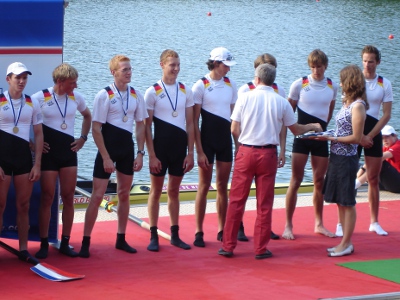 Platz drei und vier belegten die Treis-Kardener Ruderer beim dritten und letzten World Cup in Luzern auf dem Rotsee. Erstmals in der Vereinsgeschichte durfte die Rudergesellschaft drei Sportler auf einen World Cup entsenden. Nach einem gemeinsamen Trainingswochenende in Treis-Karden reiste der neu formierte Leichtgewichts Achter des Deutschen Ruderverbandes, in dem Lukas Oberhausen und Frederik Prigge sitzen, an den Rotsee nach Luzern um sich dort das erstemal der internationalen Konkurrenz zu stellen. Das von dem Treis-Kardener Trainer Michael Hippert und Landestrainer Robert Sens trainierte Boot hatte nur drei Gegenmeldungen, so das keine Vorentscheidungen ausgefahren werden mussten. Lediglich ein Bahnverteilungsrennen am Freitag sollte darüber entscheiden, welches Boot im Finale am Samstag auf den begehrten Innenbahnen rudern darf. Hier konnte das deutsche Boot Platz zwei hinter den Niederlande belegen und bekam somit die Bahn drei zugeteilt. Im Finale am Samstag kam dann die deutsche Crew um Schlagmann Max Röger vom Start an nicht so richtig in Schwung. Im Schnitt ein bis zwei Schläge niedriger in der Schlagfrequenz rudernd als die Boote aus den Niederlande und Italien zwangen das deutsche Boot sich mit dem dritten Platz zu begnügen. Österreich wurde vierter. Trotz des dritten Platzes ein gelungener Einstand für die jungen Ruderer Lukas Oberhausen und Frederik Prigge bei ihrer ersten World Cup Regatta. Die Mannschaft hat nun noch sechs Wochen Training vor sich, bevor es Ende August bei der Weltmeisterschaft in Poznan (Polen) um die WM Medaillen geht. In unveränderter Besetzung ging der deutsche Leichtgewichts Vierer ohne Steuermann mit Jost Schömann-Finck in Luzern an den Start. Das große Meldefeld erforderte das erste mal in dieser Saison Halbfinalrennen in dieser Bootsklasse. Durch einen zweiten Platz im Vorlauf hinter Frankreich und einen dritten Platz im Halbfinale hinter Tschechien und Dänemark qualifizierte sich die Crew um Jost für das Finale am Sonntag. In einem sehr engen Feld lagen bei 1500 Meter noch fünf Boote innerhalb von einer Sekunde. Am Ende konnte sich der Olympiasieger aus Dänemark gegen die restlichen Boote durchsetzen und gewann wie auf den vorherigen World Cup Regatten das Finalrennen. Zweiter wurde Frankreich vor Tschechien und dem Boot aus Deutschland das auf den letzten 500 Meter noch das Boot aus Italien überholen konnte. "Obwohl uns an diesem Wochenende etwas die Spritzigkeit gefehlt hat, haben wir uns von Rennen zu Rennen gesteigert. Wir wissen jetzt woran wir arbeiten müssen und werden uns auf die Weltmeisterschaft gut vorbereiten um in den Medaillenkampf eingreifen zu können" erzählt Jost nach dem Wochenende. |