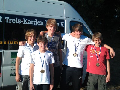 Nach der bereits guten Jahresbilanz, nun noch einmal sechs Titel für die Rudergesellschaft Treis-Karden bei den Süd-West Deutschen Meisterschaften auf der gestauten Mosel bei Schloss Monaise in Trier. Hinzu kommen noch zwei zweite und ein dritter Platz. Bei sonnigem Herbstwetter wurde bei den Kleinbooten über 1000 Meter und in den Großbooten über 500 Meter um die Titel gerudert. Im Kampf um die Goldmedaillen errang Alexander Diedrich zwei Siege. Dem Deutschen Jugendmeister gelang es im Einer und im Zweier (U17) mit Paul Becker vorne zu sein. Im Doppelvierer mit Steuermann mit Paul Becker, André Simon, Max Nitsche (Ingelheim) und Steuermann Jonas Wiesen wurde er Zweiter. Moriche Schlebusch setzte im Finale des Leichtgewichts Einers (U19) etwas zu spät den Endspurt an und wurde knapp geschlagen. Ein weiteres Ausrufezeichen setzten Jonathan Müller, Florian Stein, Peter Friedrich und Lennard Belda. Zusammen mit ihrem Steuermann Jonas Weber konnten sie den Doppelvierer der U15 gewinnen. Auch in den Doppelzweierrennen, in denen Jonathan Müller mit Lennard Belda und Peter Friedrich mit Florian Stein zusammen gefahren sind, ließen sie der Konkurrenz keine Chance. Lennard Belda gewann zusätzlich noch sein Einerrennen und war mit drei Titeln der erfolgreichste Treis-Kardener Ruderer. Die Trainer konnten mit dem Abschneiden mehr als zufrieden sein, da ihre Mannschaften virusgeschwächt an den Start gehen mussten. So traten zwei Mannschaften nicht in Originalbesetzung an und zwei mussten sogar zurückgezogen werden. |