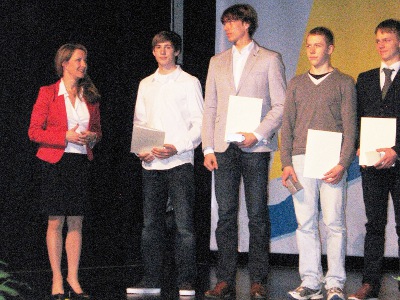 Auf der Deutschen Jugendmeisterschaft 2011 in Brandenburg konnte Alexander Diedrich seinen bisher größten Erfolg in seiner noch jungen Karriere feiern. Er wurde überlegen Deutscher Jugendmeister im Einer in der Altersklasse U 17. Jetzt wurde er vom Landessportbund für seinen großen Erfolg geehrt. "Auf die nächste Ehrung freue ich mich ganz besonders", mit diesen Worten kommentierte Staatssekretärin Heike Raab, als Vertreterin des Sportminister Roger Lewentz, die Ehrung von Alexander Diedrich, auf der Bühne in der Sporthalle in Ingelheim. Die Sportjugend des Landessportbundes Rheinland-Pfalz hatte zur 18. Meisterehrung eingeladen und der geschäftsführende Vorsitzende der Sportjugend, Thomas Biewald und Karin Augustin, Präsidentin des Landessportbundes Rheinland-Pfalz, sowie Heike Raab führten die Ehrungen durch. |