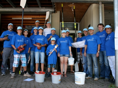 Eine Renovierung des Sportlerheimes der RG Treis-Karden 1969 e.V. war dringend notwendig geworden. Deshalb packten zahlreiche Vereinsmitglieder und weitere freiwillige Helfer kräftig mit an und führten sowohl bauliche wie auch energetische Maßnahmen am Clubheim aus. Mit dabei auch Gereon Schwarzer. Er brachte 2.000 Euro Unterstützung von seinem Arbeitgeber, RWE Deutschland, mit. Engagierte Vereinsmitglieder krempelten zwischen den Trainingseinheiten die Ärmel hoch und renovierten ihr Sportlerheim. Sie wechselten die durch Hochwasser beschädigte Eingangstür aus. Anschließend griffen sie zu Pinsel und Farbe, um die Räume des Bootshauses in neuem Glanz erstrahlen zu lassen. Sie strichen nicht nur die Holzabdeckung im Eingangsbereich und Treppenaufgang, sondern auch die Türen des Club- , Ergo-, Kraft- und Umkleideraumes. Auch dem Clubraum selbst verliehen die Helfer durch warme freundliche Farbe ein neues Aussehen. Die Renovierung des Bootshauses fand im Rahmen des Mitarbeiterprojektes "Aktiv vor Ort" statt. RWE Deutschland unterstützt ehrenamtliches Engagement mit der Aktion "Aktiv vor Ort". Dabei engagieren sich Mitarbeiter des Unternehmens in ihrer Freizeit für Mitmenschen. Wer selbst die Ärmel hochkrempelt und sich für einen guten Zweck in seiner Heimatgemeinde einbringt, erhält bis zu 2.000 Euro für die Maßnahme. "Immer eine Handbreit Wasser unterm Kiel, aber bitte kein Hochwasser mehr im Bootshaus!" Dieser Wunsch von Michael Hippert, zweiter Vorsitzender des Sportvereines, sollte nach den Arbeiten nun in Erfüllung gehen. Hippert dankte allen freiwilligen Helfern: "Es ist in unserer Zeit nicht mehr üblich, seine Freizeit für andere Menschen einzusetzen." |