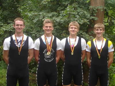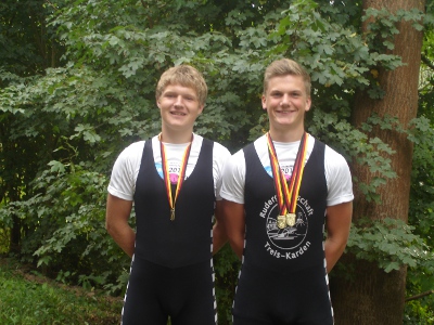 Mit vier Titeln, vier Silber- und drei Bronzeplätzen errang die Rennmannschaft der RG Treis-Karden ein respektables Ergebnis, waren doch Leistungsträger krankheitsgeschwächt, oder mussten gar abgemeldet werden. Auf der gestauten Nahe bei Niederhausen gewannen die Bundeskaderathleten Jonas Belda und Paul Becker den Zweier ihrer Altersklasse U17, sowie auch den in der älteren Altersklasse U19. Erfolgreich waren sie noch mit einer Spitzenleistung im Vierer U19 mit Schlagmann Alexander Diedrich und dem physisch starken Robin Steiner. Diedrich hatte zuvor als Favorit sein Einerrennen sicher gewinnen können. Die Silbermedaillen konnten folgende Mannschaften erringen: der Doppelvierer mit Steuermann der Altersklasse U17 mit Schlagmann Paul Becker, Jonas Belda, Florian Stein, Jonathan Müller und Steuermann Jonas Wiesen. Zwei sehr schöne zweite Plätze errang Philipp Groiss im Leichtgewicht Jungen Einer U14, sowie mit Jonas Weber im Doppelzweier. Svenja Klee wurde im Leichtgewichts Einer U15 ebenfalls Zweite. Für den erkrankten Lennart Belda sprang Groiss noch als Schlagmann im Doppelzweier U15 mit Tim Bier ein. Beide überzeugten hier mit der Bronzemedaille. Eine solche erkämpfte sich auch Laura Nitzsche im Leichtgewichts Einer U17, sowie die talentierten Svenja Klee und Eva Sackenheim in Doppelzweier U15. Die Finalrennen erreichten noch Robin Steiner im Einer U19 und wurde Vierter. |