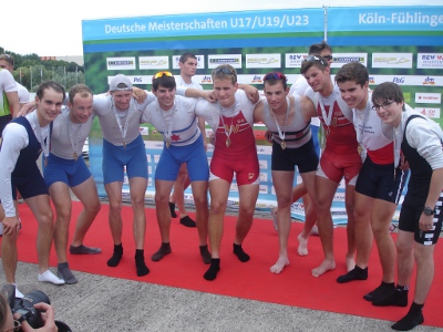 Die Rudergesellschaft Treis-Karden gewann bei den Deutschen Jahrgangsmeisterschaften auf der Regattabahn in Köln-Fühlingen drei Titel, eine Silber- und eine Bronzemedaille. Mit diesen Erfolgen verbunden ist eine Nominierung zur U23-WM in Linz (Donau) im Vierer mit Steuermann, sowie eine Weltcup-Nominierung im Zweier mit Steuermann nach Luzern (CH). Ergometerweltmeister Alexander Diedrich dominierte klar die Konkurrenz. Mit jeweils Bestzeiten gewann er den Vorlauf, das Halbfinale und eindrucksvoll das Finale im Einer der U 19 Leichtgewichte. Hier konnte sich Diedrich bereits nach 500 Metern mit einer Länge vor Hendrick Kaltenborn (Berliner RC) legen. Dahinter Nicholas Mattes (Mülheim), der nach einem verpatzten Start eine furiose Aufholjagd hinlegte. Bei 1200 Meter lag Alexander Dietrich deutlich vorne, gefolgt von einem vier Boote Feld, dem noch Jannik Menke (Hannover) angehörte. Im Ziel war es dann Hendrik Kaltenborn (BRC), der knapp die Silbermedaille vor Nicholas Mattes errudern konnte. Der sichere Titelgewinner aber war Alexander Diedrich von der Rudergesellschaft Treis-Karden. Senkrechtstarter dieser Titelkämpfe ist Laura Nitzsche, die im Leichtgewichts Doppelzweier U 19 (in Renngemeinschaft mit Essen) die Silbermedaille errang und auch im Vierer (in der Renngemeinschaft mit Essen/ Krefeld/ Koblenz) die Bronzemedaille. Im Zweier lagen bei 500 Meter alle Boote fast gleichauf. Bei 1000 Meter konnten sich dann Caroline Meyer, Hannah Besel (Berlin/Düsseldorf) mit einer zunächst halben Länge absetzen. Dahinter Hanna Hüttermann und Elisabeth Amenu (Kappeln) und Julia Kovaks, Laura Nitzsche (TVK Essen/RG Treis Karden), die ständig die Plätze zwei und drei tauschen. Im Ziel hat das Boot aus Essen/Treis-Karden eine halbe Bootslänge Vorsprung vor Kappeln und gewinnt Silber. Ein Zitterpartie auch im Doppelvierer, denn die sechs Boote des Endlaufes liegen lange gleich auf. Durch Zwischenspurt gehen dann die Favoritenboote aus Berlin/Düsseldorf und Kappeln in Führung. Dahinter ein Kampf um die Bronze Position zwischen der Renngemeinschaft Treis-Karden/Essen/Koblenz/Krefeld, mit Laura Nitzsche und der Renngemeinschaft Saarbrücken/Karlstatt/Mannheim/Köln. Die Gegnerinnen setzen den Zwischenspurt etwas früher, doch die Mannschaft mit Laura Nitzsche kann mithalten und setzt einen Spurt dagegen, der den entscheidenden Vorsprung zum Gewinn der Bronzemedaille bringt. Die Rudergesellschaft stellt nicht nur starke Ruderer, sondern auch den besten Steuermann. Jonas Wiesen steuerte nicht nur den DRV Auswahlvierer (U 23) zum Deutschen Meistertitel, sondern auch den Achter (U 23). Belohnt wurde die starke Leistung mit der Nominierung zur U 23 Weltmeisterschaft in Linz, bei der er den Vierer steuern soll, sowie mit der Nominierung zum Weltcup auf dem Rotsee in Luzern im Zweier mit Steuermann. Sechs starke Achtermannschaften waren in diesem Finale vertreten, drei davon aus dem Stützpunkt Dortmund. Nach den Ergebnissen der Ratzeburger Ruderregatta zu urteilen war die Mannschaft von Steuermann Jonas Wiesen der stärkste Konkurrent des "Deutschlandachters U23". Die beiden Boote waren es dann auch, die Bug an Bug bis zur 1500 Meter Marke um die Führung kämpften. Hier kam es zur entscheidenden Rennphase als Wiesen seine Mannschaft einen Zwischenspurt fahren ließ, der knapp vor dem Endspurt den entscheidenden Vorsprung zum Gewinn der Goldmedaille sicherte. Im Vierer mit Steuermann starteten starke Renngemeinschaften, die vom DRV aufgestellt worden waren. Dabei ging es auch um die Nominierung zur U23 Weltmeisterschaft in Linz (Donau). Wiesen setzt mit seiner Mannschaft (Jan Bernhard, Torben Johannesen, Carl Moritz Reinke, Matthias Hörnschemeyer) gezielt frühe Zwischenspurts und steuerte sie bereits nach Streckenhälfte einem sicheren Sieg entgegen. Erfreulich aus Treis-Kardener Sicht sind auch die weiteren Platzierungen. Svenja Klee und Eva Sackenheim wurden Zweite im B-Finale (U 17), ein guter Platz für die hoffnungsvolle junge Mannschaft. Robin Steiner erkämpfte sich einen dritten Platz im B-Finale des Einers (U23). Jonathan Müller kam im Rheinland-Pfalz-Vierer (Leichtgewicht U 17)auf den elften Rang. Der U 19 Vierer mit Paul Becker, Leon Schuler (Trier), Florian Stein, Jonas Belda und Steuermann Lorenz Schneiders kam als Sechster ins Ziel. Die Rudergesellschaft mit den Trainern Dominik Keller, sowie Dagmar und Michael Hippert, blicken mit Stolz auf diese Leistungen, wie auch das Kürfürst-Balduin Gymnasium Münstermaifeld, denn die erfolgreichen Sportler sind allesamt Schüler der Partnerschule des Sports. |
