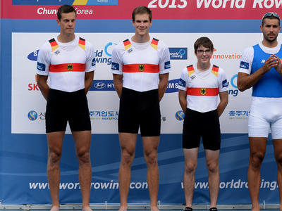 Jonas Wiesen von der Rudergesellschaft Treis-Karden und seine Mannschaft mit Bastian Bechler und Paul Schröter (beide Berlin) haben ihre Chance wahr genommen. Sie gewannen in einem spannenden Finale die Silbermedaille für Deutschland bei den Weltmeisterschaften 2013 auf dem Tangeum-See in Chungju, Südkorea. Im Bahnverteilungsrennen hatten sie mit dem zweiten Platz Medaillenhoffnungen geweckt, sich eine der Mittelbahnen errudert und damit den Grundstein zu diesem Erfolg gelegt. Nach dieser Vorentscheidung stand die Frage im Raum, ob eine der Mannschaften sich hier zurück gehalten hatte. Nun ist klar, es war die französische Mannschaft, die mit dem vierten Platz „gemauert“ hatte und nun im Finale den Versuch startete, das deutsche Boot zu überholen. An erster Stelle jedoch die favorisierten Italiener, die die Konkurrenz beherrschen, stets dicht gefolgt von der deutschen Mannschaft, die wiederum von den Franzosen hart bedrängt wurde, die USA fällt schon bei Streckenhälfte weit zurück. Ein früh angesetzter Endspurt bringt das französische Boot gefährlich nahe an die Silberposition, doch Jonas Wiesen hat das aufmerksam beobachtet und lässt seine Mannschaft mit einem Spurt kontern und die Positionen bleiben auf den letzten 250 Metern unverändert. Gold gewinnt Italien, Bronze geht an Frankreich und Silber an den 17-jährigen Jonas Wiesen aus Brieden und sein "Berliner Team" mit Schlagmann Bastian Bechler und Bugmann Paul Schröter. Es sind sicherlich genug Daumen gedrückt worden für den sympathischen Sportler der Rudergesellschaft Treis-Karden, sicherlich auch in seinem Wohnort Brieden und in seiner Schule, dem Kurfürst-Balduin Gymnasium Münstermaifeld, der Partnerschule des Sport, die den Schüler der Jahrgangsstufe 12 für diese WM frei gestellt hat. |