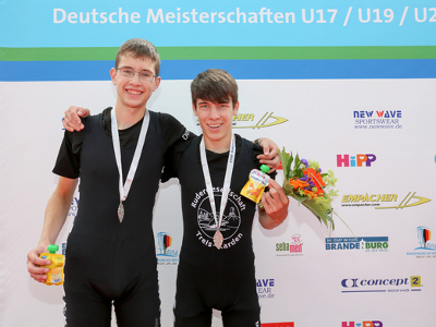 Es war wahrlich ein erfolgreiches Wochenende für die Rudergesellschaft Treis-Karden. Mit drei Gold-, zwei Silbermedaillen und einer Bronzenen erzielten die jungen Leistungssportler ein herausragendes Ergebnis bei den Deutschen Jahrgangsmeisterschaften (U17, U19 und U23) auf der Regattastrecke Beetzsee in Brandenburg an der Havel. Hinzu kommt die WM Nominierung von Steuermann Jonas Wiesen zur U23 Weltmeisterschaft in Varese (Italien). Insgesamt waren 378 Vereine und Renngemeinschaften nach Brandenburg angereist, um an den vier Regattatagen die besten Nachwuchssportler Deutschlands zu ermitteln. Nach einem neunmonatigen täglichen Training, mit zwei Trainingslagern und vier Prüfungs- und Vorbereitungsregatten steht nun fest, dass die Trainingsplanung des Trainerteams mit Dominik Keller, Dagmar und Michael Hippert wieder gestochen hat. Durch die Ergebnisse auf den vorangegangenen Regatten konnten sich die jungen Rennruderer von der Mosel beim Kampf um die begehrten Medaillen zu den Anwärtern rechnen. Gold errang Jonas Wiesen, der den „Deutschlandachter“ U23 zum Sieg steuerte und mit einem Teil dieser Mannschaft im Vierer mit Steuermann die Silbermedaille errang. Belohnt wurde die Steuerleistung mit der Nominierung zur U23 Weltmeisterschaft in Varese (Italien). Gold errang auch Alexander Diedrich im Leichtgewichts Achter U23 mit dem nationalen Auswahlboot. Zudem belegte er im Einer den dritten Platz im B-Finale der Leichtgewichte. Unerwartet aber überzeugend gewann Svenja Klee den Leichtgewichts Einer U17, nachdem sie Vorlauf und Halbfinale mit Bestzeiten gewonnen hatte. Silber hinter der dominierenden Berliner Renngemeinschaft ging an Tim Bier und Jonas Weber im Leichtgewichts Doppelzweier U17, nachdem sie ihr bestes Saisonergebnis abgeliefert hatten Die Bronzemedaille ging an Laura Nitzsche in der Renngemeinschaft mit Koblenz und Erlangen. Durch einen „Krebs“ fuhr die Mannschaft im Leichtgewichts Doppelvierer U19 knapp an der Silbermedaille vorbei. Im Zweier belegte sie nach verpatzten Vorentscheidungen mit Partnerin Lena Olbrich (Erlangen) den fünften Platz. Pech hatte auch Paul Becker, der mit Renngemeinschaftspartner Marvin Degen aus Speyer in der technisch anspruchsvollsten Bootsklasse, dem Zweier ohne Steuermann, an den Start ging und mit nur einer Sekunde die Qualifikation zum A Final verfehlte und den siebten Platz belegte. |
