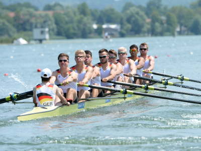 Steuermann Jonas Wiesen von der Rudergesellschaft Treis-Karden steuerte den starken DRV Nachwuchsachter U23 beim zweiten World Cup des Jahres auf den sechsten Platz. Bei sommerlichen Temperaturen fand im norditalienischen Varese der zweite Weltcup der vorolympischen Saison statt. 42 Nationen brachten hier ihre Boote auf dem Lago di Varese an den Start. Zu ihnen gehörten auch die wichtigsten Ruder Überseenationen. Die deutsche Flotte nutzt diese Gelegenheit aber nicht nur zum Kräftemessen des Olympiakaders mit der Konkurrenz, sondern möchte auch die U23 Mannschaften an die Elite heranführen und ihnen Wettkampferfahrung auf höchstem Niveau ermöglichen. Daher war auch der U23 Achter mit Steuermann Jonas Wiesen aus Brieden am Start. Die junge Mannschaft ließ im Vorlauf mit dem dritten Platz aufhorchen. Der Sieger dieses ersten Vorlaufs war das Weltmeisterboot aus Großbritannien, Zweiter wurde Polen, der WM Dritte. Den Zweiten Vorlauf gewann der „Deutschlandachter“ vor den USA, die damit auch ins A-Finale einzogen. Fünf Achter traten nun im Hoffnungslauf gegeneinander an und nur die beiden ersten sollten das A-Finale erreichen. Dem deutschen Nachwuchsachter mit Jonas Wiesen am Steuer gelang es knapp hinter Neuseeland den zweiten Platz, vor Frankreich, Italien und China zu belegen. Während der "Deutschlandachter“ im A-Finale mit drei Zehntel Sekunden Rückstand seine erste Saisonniederlage gegen den Weltmeister aus Großbritannien einstecken musste, ruderte der junge deutsche Achter U23 auf den sechsten Platz mit weniger als eine Sekunde Rückstand auf den WM Dritten Polen. Auf den dritten und vierten Platz ruderten die Mannschaften aus den USA und aus Neuseeland. |
