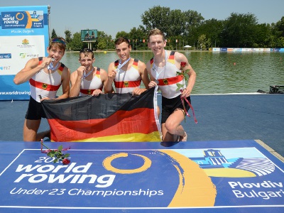 Ein erfolgreicher Tag für die beiden Spitzensportler der Rudergesellschaft Treis-Karden. Bei den U 23 Weltmeisterschaften im bulgarischen Plovdiv fuhren sie in den olympischen Bootsklassen in die Medaillenränge. Jonas Wiesen aus Brieden gewann als Steuermann des U 23 "Deutschlandachters“ die Goldmedaille. Alexander Diedrich aus Polch fuhr im Leichtgewichtsvierer auf den Silberrang. Bereits im Vorlauf traf der Achter von Jonas Wiesen auf den Mitkonkurrenten aus den USA und bereits hier kam es zu einem spannenden Duell der beiden Favoriten. Zuerst ging das deutsche Boot deutlich in Führung, dann fuhr das USA Boot wieder heran und übernahm die Führung und mit einem beherzten Endspurt drehte das deutsche Boot den Spies wieder herum und gewann diesen Lauf mit vier Zehntel Sekunden. Durch einen deutlichen Sieg im zweiten Vorlauf konnte sich Rumänien ebenfalls direkt fürs Finale qualifiziere. Durch die beiden Hoffnungsläufe konnten dann die USA und auch Frankreich, Russland und Großbritannien das A Finale erreichen. Hier setzte sich die Mannschaft von Jonas Wiesen sofort an die Spitze des Endlauf, gefolgt von den USA in der zweiten Position. Eine souveräne Vorstellung des deutschen Bootes in diesem WM Finale. Immer wieder blickte Jonas Wiesen zur Konkurrenz und behielt vor allem die Mannschaft der USA im Auge um der eigenen Mannschaft die entscheidenden Anweisungen für die Spurts mitzuteilen. Mit einer Bootslänge bleibt die deutsche Mannschaft mit Malte Daberkow, Michael Trebbow, Lukas Duhnkrack, Laurits Follert, Carl Moritz Reinke, Nico Merget, Malte Großmann Torben Johannesen und Steuermann Jonas Wiesen in Front vor den USA, die sich wiederum klar vor dem Bronzemedaillengewinner aus Rußland platzieren konnten. Wie auch der Achter, so erreichte auch der Leichtgewichtsvierer mit Alexander Diedrich direkt das A Finale. Hierbei reichte der Mannschaft im Vorlauf schon der zweite Platz. Erster aber wurde der Vierer aus Japan mit einer Sekunde Vorsprung und auch der Vierer aus Italien hinterließ mit seinem Sieg im zweiten Vorlauf einen starken Eindruck. Zweiter mit der Qualifikation zum A Finale wurde das Boot aus Großbritannien und durch die Hoffnungsläufe kamen noch die Boote aus den USA und Frankreich hinzu. Im Finale kam es zu einem Duell des deutschen Bootes mit dem Italienischen. Die Italiener bestätigen ihren starken Eindruck aus dem Vorlauf und gehen in Führung, die sie bis zum Ziel nicht mehr abgeben. Ebenso deutlich rudert das deutsche Boot mit Alexander Diedrich, Lucas Schäfer (Marburg), Sven Ditzel und Felix Brummel (beide Münster) auf den Silberplatz. Mehrfache Positionswechsel gibt es im Verfolgerfeld, aus dem das Boot aus Großbritannien die Bronzemedaille erringt. |
