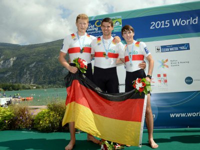 Die Rudergesellschaft Treis-Karden und die Ortsgemeinde Brieden sind wieder mächtig stolz auf Jonas Wiesen, der mit Jakob Schneider (Essen) und Clemens Ernsting (Berlin) im Zweier mit Steuermann bei der WM im französischen Aiguebelette die Silbermedaille gewinnt. Es hatte sich im Vorlauf angedeutet, dass der deutsche Zweier eine der begehrten Medaillen gewinnen könnte. Favorit auf den Sieg sollten die Briten sein, die die beste Zeit der beiden Vorläufe fuhren. Weißrussland zählte nach starkem Vorlauf und gewonnenem Hoffnungslauf mit zum Kreis der Medaillenanwärter. Durch den Hoffnungslauf qualifizierten sich noch Serbien, Südafrika und Frankreich für das A-Finale. Wiesen und Co. starten verhalten in dieses wichtige Rennen, der britische Zweier ebenfalls, die Weißrussen rudern an die Spitze und suchen ihre Chance mit einem langen Startspurt. Doch der deutsche Zweier lässt sich nicht aus der Ruhe bringen. Mit langem Schlag rudern sie neben den Briten bis zur Streckenhälfte an die Spitze. Die Weißrussen müssen ihren hohen Anfangstempo Tribut zollen, fallen zurück und werden von den Serben überholt. Der britische Zweier wird seiner Favoritenrolle gerecht und platziert sich deutlich vor dem deutschen Boot, das sich ganz auf den Gewinn der Silbermedaille eingestellt hat. Auf den letzten 500 Metern starten die Serben einen Angriff auf die Position der Deutsche, der aber mit einem sauberen Druckspurt gekontert werden kann. Gold gewinnen die Briten, Silber geht an Deutschland mit Jonas Wiesen, Jakob Schneider und Clemens Ernsting, die Serben gewinnen Bronze, Vierter wird Südafrika, Fünfter die Weißrussen und Sechster die Franzosen. Ein heimatlicher Empfang für Jonas Wiesen ist auch wieder vorgesehen. Nach Absprache der Rudergesellschaft Treis-Karden und Ortschef der Gemeinde Brieden Erwin Thönnes, soll ein gemeinsamer Empfang in Brieden statt finden. |