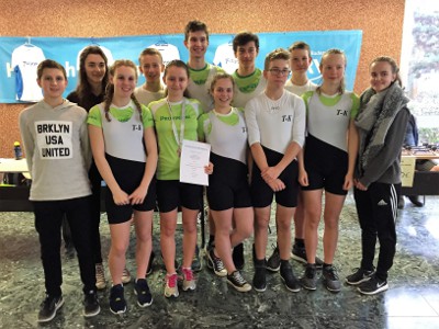Auch in diesem Jahr fanden in Essen Kettwig die diesjährigen Deutschen Meisterschaften im Ergometer Rudern statt. Die Rudergesellschaft Treis-Karden hatte neun jugendliche Sportler gemeldet, die sich in den großen Starterfeldern, mit persönlichen Bestleistungen, beachtlich präsentierten. Julia Bischof gewann bei den Leichtgewichts Juniorinnen B (U17) die Bronzemedaille und konnte damit die erste Podest Platzierung bei einer Meisterschaft in diesem Jahr für die Rudergesellschaft verbuchen. Im gleichen Rennen belegte Hanna Walter den fünften Platz und Louisa Fuchs und Marit Laux die Plätze 22 und 26. Den zehnten Platz in einer Konkurrenz von 55 Startern errang Simon Haible (U15). Ebenfalls mit persönlichen Bestleistungen kam Steffen Theisen (U17) auf den 35. Platz ins Mittelfeld wie auch Leon Spies und Julian Harwardt mit den Plätzen 34 und 40. Tim Bier platzierte sich bei den Leichtgewichts Männern auf den 13. Rang. Die Betreuung hatte Michael Hippert und Klaus Bischof übernommen und wurden von den Jugendlichen Anna Heidler, Katharina Nitzsche und Michael Pütz tatkräftig unterstützt. |