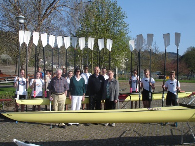 Das traditionelle Anrudern der Rudergesellschaft Treis-Karden wurde in bewährter Weise von den „Alten Herren“ ausgerichtet. Bei Kaffee, Kuchen und Gegrilltem kam auch wieder die große Barke, der Achter, mehrere Vierer und Kleinboote zum Einsatz. Gleich vier Rennboote wurden dabei getauft, „Ausreißer“, ein Zweier für den Spitzensport, von Madeleine Dazert-Balthasar, der Schulleiterin des Kurfürst-Balduin Gymnasiums Münstermaifeld. Ein Renneiner der im Jugendbereich eingesetzt wird wurde von Klaus Keip auf den Namen „Domspatz“ getauft. Ein Doppelzweier erhielt von Marlies und Wolfgang Naumann den Namen „Glücksboote“ und Rolf Stein taufte den Rennvierer „Rosi“. Alle Taufpaten wünschten ihren Patenbooten nach einer Sektdusche „eine gute Fahrt und stets eine Handbreite Wasser unter dem Kiel“.