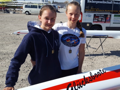 Neun Siege errangen die Jugendlichen der Rudergesellschaft Treis-Karden bei der Oberrheinischen Frühregatta im Mannheimer Mühlauhafen. Für die Trainer, Dagmar Hippert und Dominik Keller, ein zufriedenstellendes Ergebnis. In den 21 gemeldeten Rennen wurden neun Siege und zehn zweite Plätze eingefahren, wobei die Siege gleichmäßig verteilt waren. Simon Haible war an diesem Wochenende nicht zu schlagen und errang jeweils drei Siege im Jungen Einer (U15). Er dominierte dabei die Konkurrenz nach belieben und fuhr jedes mal einen beachtlichen Vorsprung heraus. Ebenfalls im Einer erfolgreich war Julia Bischof. Sie siegte an beiden Regattatagen bei den Leichtgewichten ihrer Altersklasse. Hanna Walter, die im gleichen Rennen startete, konnte am Sonntag ebenfalls ihre Abteilung gewinnen, Samstag belegte sie den zweiten Platz. Beide Ruderinnen gingen noch im Doppelzweier an den Start. Hier konnten sie an beiden Tagen einen zweiten Platz verbuchen. Ebenfalls im Doppelzweier am Start waren Julian Harwardt und Leon Spies. Samstags mussten sie noch einem Boot den Vortritt lassen, Sonntags war ihnen aber der Sieg nicht mehr zu nehmen und sie verwiesen das Boot aus Nürtingen auf den zweiten Platz. Abgerundet wurde das gute Ergebnis von Katharina Nitzsche, die Samstags im Leichtgewichts Juniorinnen Einer der Altersklasse A (U19) gewinnen konnte. |