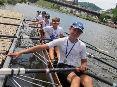 Einen Landestitel, vier weitere Siege, sowie gute Platzierungen errang der Ruderenachwuchs aus Treis-Karden am Regattawochenende in Saarburg. Beim Landesentscheid traten alle Rudersportler an, die sich für den Bundesentscheid im Jungen- und Mädchenrudern in Brandenburg qualifizieren wollen. Von der Rudergesellschaft Treis-Karden startete hier nur Simon Haible, in dieser Saison im Einer U15 bisher ungeschlagen und legte in beeindruckender Manier die 3000 m Strecke zurück. Mit der Tagesbestzeit von 12:27 min war er sogar schneller als die Vierer und Zweier. Damit wird er in zwei Wochen in Brandenburg auf die besten Einerruderer seines Alters treffen wenn er die Farben von Rheinland-Pfalz beim Bundesentscheid vertritt. Sonntags nahmen die jungen RG Sportler an der Saarburger Ruderregatta über die 500 m Distanz teil. Dabei siegte erneut Simon Haible im Einer. Auch der Sieg im Jungen Doppelvierer U15 ging an die RG Treis-Karden mit den Ruderern Simon Haible, Lukas Müller, David Kindsvater, Felix Diederichs und Steuermann Felix Bischof. Steffen Theisen gewann sowohl den Einer U17, als auch den Einer der U19. In weiteren Bootsklassen starteten Nicole Simons, Emilia Thönnes, Jule Otto, Lena Gewald, Clara Severin, Anastasia Frimmberger, Maren Maur, Marlon Hennen, Alexander Kindvater, Simon Beil, Inja Gerhartz, Ann-Sophie Cichy und Anna-Sophia Gorges und fuhren dabei fünf zweite und zwei dritte Plätze ein. Das Betreuerteam mit Lorenz Schneiders, Christina Fuhrmann und Petra Walter war sich einig. Walter: „Es hat wirklich Spaß gemacht, mit dieser sehr netten Gruppe zu regattieren. Die Rennen wurden beherzt gefahren, beim Bootstransport halfen sie sich untereinander und alle haben gewonnen, wenn nicht jeder sein Rennen, so doch an Erfahrung!“ |
