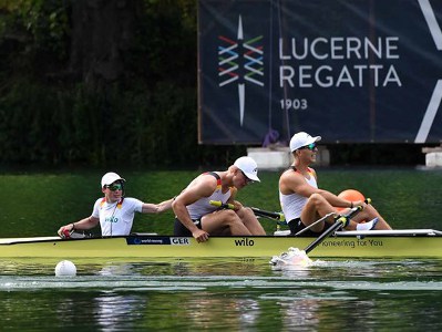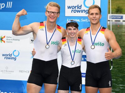 Steuermann Jonas Wiesen von der RG Treis-Karden gewinnt beim Weltcup auf dem Rotsee in Luzern die Goldmedaille. Für die deutsche Ruder-Nationalmannschaft ist die Rotsee Regatta in Luzern die zweite Weltcup Station. Hier gilt es, die Weichen für die Weltmeisterschaft Ende September in Sarasota (USA,Florida), zu stellen. Mit 700 Athleten aus über 50 Nationen ist die Rotseeregatta auch dieses Jahr wieder stark besetzt und alle großen Rudernationen haben ihre Top Boote nach Luzern geschickt. Im Zweier mit Steuermann geht Jonas Wiesen, wohnhaft in Brieden, mit Malte Großmann (Hamburg) und René Stüven (Wanne-Eickel-Herten) an den Start. „ Die Konkurrenz ist eine Überraschung, so wie immer, da ja alle zum ersten Mal in Luzern im Zweier mit Steuermann an den Start gehen“, so Wiesen. Der deutsche Zweier startet schnell und geht direkt in Führung vor Australien und Spanien. Bei Streckenhälfte sieht die Führung mit 4 Sekunden vor Australien und 6 Sekunden vor Spanien sicher aus. Doch der australische Zweier zieht einen langen Endspurt, der aber von der deutschen Mannschaft gekontert werden kann. Mit etwas mehr als einer halben Bootslänge Vorsprung geht das deutsche Boot mit Jonas Wiesen als Erster über die Ziellinie. Dritter wird Spanien, sieben Sekunden zurück. Bis 1992 war der Zweier mit Steuermann eine beliebte und bedeutende olympische Bootsklasse, die mit den physisch stärksten Ruderern besetzt wurden. Technische „Unebenheiten“ konnte der Steuermann ausgleichen. Heute dient diese weiterhin beliebte WM Bootsklasse als ein „Ersatzteillager“ für Achter und Vierer. Fällt hier einer aus, wird eingewechselt. Wie sieht nun der internationale Einsatz von Wiesen in diesem Jahr aus? Wiesen: „Ende Juli werde ich in Plovdiv (Bulgarien) den Nationalachter U 23 steuern und Ende September den Zweier mit Steuermann in Sarasota (USA,Florida).“ |
