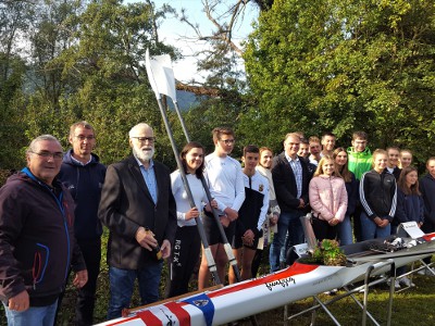Der Ehrenvorsitzender der Rudergesellschaft Treis-Karden, Peter Löhr, tauft im 50. Jahr des Bestehens der Rudergesellschaft beim Abrudern den neuen Renneiner auf den Namen „fünfzig“. Zu den Ehrengästen gehörten auch die Schulleiterin des Kurfürst-Balduin Gymnasiums Münstermaifeld, Christiane Hofmann, und der Ortsbürgermeister der Gemeinde Treis-Karden Hans-Josef Bleser. Durch den offiziellen Teil des Abruderns, mit Ehrungen der erfolgreichen Sportler, führten Sportvorsitzender Michael Hippert und Vorsitzkandidat Klaus Bischof. Anschließend wurden die Boote zu Wasser gelassen und die Saison damit offiziell beendet. |