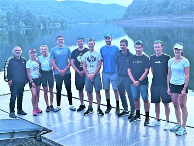 Simon Haible gewinnt die Deutsche Meisterschaft U19 im Leichtgewichts Einer und erhöht die Titelausbeute der Rudergesellschaft Treis-Karden bei Deutschen Titelkämpfen auf 62 Titel. Mit einem sechsten Platz im Vierer mit Steuermann U17 und einem siebten Platz im Einer U17 kamen weitere vordere Platzierungen durch die jugendliche Renngruppe hinzu, die auch alle der Ruder-Leistungs-AG des „KuBa“ Münstermaifeld angehören. Bei sonnigem Wetter und guten Wasserbedingungen zeigte sich der Baldeneysee in Essen in bester Verfassung und Simon Haible startete mit einem Vorlaufsieg in sein Rennen, dem Leichtgewichts Einer U19 mit 23 Booten.Im Halbfinale konnte er mit dem dritten Platz sicher das Finale erreichen, musste dafür allerdings auf eine der Außenbahnen beim starten. Die Außenbahnen erwiesen sich aber keinesfalls als Nachteil, denn Simon Haible setzte sich sofort an die Spitze des Endlaufes, dicht gefolgt von Nils Starke vom Akademischen Ruderclub Würzburg e.V., der auf der anderen Außenbahn fuhr. Die Boote der Mittelbahnen, die sich in den Vorentscheidungen so stark gezeigt hatten, spielten in diesem Finale keine Rolle.Es war Nils Starke, der mit Zwischenspurts ständig die Position von Simon Haible attackierte. Doch Haible behielt die Übersicht und konterte diese Spurts, wie auch den Endspurt und ging nach 2000 Metern mit einer halben Bootslänge als Erster über die Ziellinie. Eine weitere Bronzemedaille konnte sich Haible in der Renngemeinschaft Treis-Karden, Münster, Mülheim und Herdecke im Leichtgewichts Doppelvierer sichern. Als Rheinland-Pfalz Auswahlmannschaft gingen Felix Bischof und Christian Ilgen, sowie Steuerfrau Eva Haible im Dopppelvierer U17 gegen 15 Boote an den Start, mit im Boot Luca Britten (Saarburg) und David Michel (Mainz). Über den Hoffnungslauf und das Halbfinale erreichte diese Mannschaft das A-Finale und kam hier auf den respektablen sechsten Platz. Felicitas Welter startete im Leichtgewichts Einer U17 im Vorlauf mit der besten Vorlaufszeit. Doch mit dem fünften Platz im Halbfinale wurde sie auf die Mittelbahn im B-Finale gesetzt. Hier zeigte sie sich wieder wettkampfstark und schloss mit einem Sieg ab, der offiziell den siebten Platz bedeutete. Die Halbfinalteilnahme hatte sich Felix Diederichs (Einer U19) zum Ziel gesetzt, doch die Wettkampfauslosungen waren für ihn ungünstig. Im Vorlauf erwischte er den späteren Deutschen Jugendmeister und im sechsten Hoffnungslauf den mit den schnellsten Konkurrenten. In allen anderen Hoffnungsläufen hätte er sein persönlichen Ziel erreicht. |