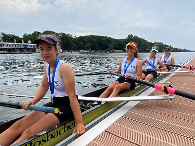 Zwei Siege, ebenso viele zweite Plätze und dritte Plätze errangen die Nachwuchstalente der Rudergesellschaft Treis-Karden, Schüler des „KuBa“ Münstermaifeld, auf der internationalen Juniorenregatta in Duisburg. Drei Wochen vor den Deutschen Jahrgangsmeisterschaften in Köln zeigten die jungen Aktiven mit ihren Renngemeinschaften auf der Regattabahn Duisburg-Wedau tolle Teamleistungen. Felicitas Welter (U 17) kam in Renngemeinschaft im Vierer mit Steuermann (Treis-Karden, Koblenz, Trier), der von Jannis Junglas gesteuert wurde, auf den dritten Platz und im Vierer ohne Steuermann durch eine langgezogenen Endspurt auf den ersten Platz. Eine besondere Platzierung, der zweite Platz, gelang ihr noch im Zweier ohne Steuermann mit Thea Dimitrova (Koblenz). Ebenfalls im Zweier ohne Steuermann zeigte Felix Bischof (U 19) gute Leistungen. Mit seinem Partner Felix Kordon (Neuwied) gewann er das Samstag Rennen trotz mehrerer Bojenberührungen am Rennbahnrand. Im Sonntags Rennen konnten sie sich den zweiten Platz sichern vor der Mannschaft aus Bremen und hinter dem Favoritenboot aus Hanau. Der junge Steuermann Jannis Junglas steuerte zudem noch ein rheinland-pfälzisches Auswahlboot auf den 3. Rang. |