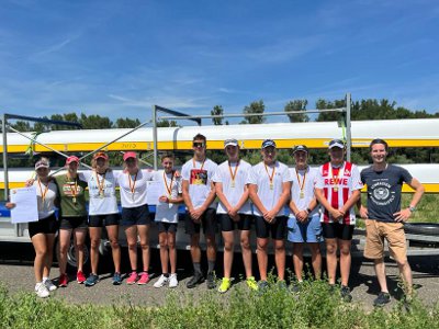Der Schulsportwettbewerb "Jugend trainiert für Olympia" fand in diesem Jahr erstmalig seit Ausbruch der Coronapandemie wieder wie gewohnt in normaler Regattakampfform statt. Zwei Mannschaften des Kurfürst-Balduin Gymnasiums traten am 18. Juli in Mainz zum rheinland-pfälzischen Landesentscheid an und wurden jeweils mit der Goldmedaille belohnt. Es handelte sich hierbei um den WK II Jungen-Vierer mit Leon Bartsch, Felix Bischof, Louis Dehen, Jan Schwab und Steuermann Jannis Junglas mit Ersatzmann Henry Kathan. In ihrem Rennen konnten die Jungen aus Münstermaifeld den Gig-Vierer aus Bad Kreuznach souverän mit anderthalb Bootslängen Vorsprung schlagen. Dies ist besonders bemerkenswert, da die Mannschaft aus Bad Kreuznach der höheren Altersklasse WK I angehörte. Insofern hatte sich unsere Mannschaft verdient als Landesmeister für das Bundesfinale qualifiziert, wo sie das Bundesland Rheinland-Pfalz vertreten wird. Eine Goldmedaille errungen hatte ebenfalls die Mädchenmannschaft mit Alena Röser, Susanna Sobol, Felicitas Welter und Eva Haible sowie mit Steuermann Jannis Junglas. Mit herausragenden zwei Bootslängen Vorsprung gewannen die maifelder Ruderinnen vor der zweitplatzierten Heimmannschaft aus Mainz. Leider kann unser Boot aufgrund der Absage einer Ruderin beim Bundesfinale nicht antreten. Freuen wird dies die zweitplatzierten Sportlerinnen aus Mainz, die stattdessen in Berlin das Land Rheinland-Pfalz vertreten werden.