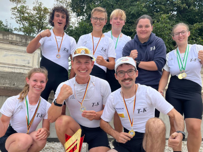 | Die Finals 2025 in Dresden Zwei goldene Medaillen für Jonas Wiesen von der RG Treis-Karden. Bei den Finals in Dresden wird der Steuermann aus Brieden gleich zwei Mal Deutscher Meister im Ruder Sprint. In KO Entscheidungen gegen die besten Achter der deutschen Ruder Bundesliga hatte sich der Deutschlandachter ins 350 Meter Finale vorgekämpft.