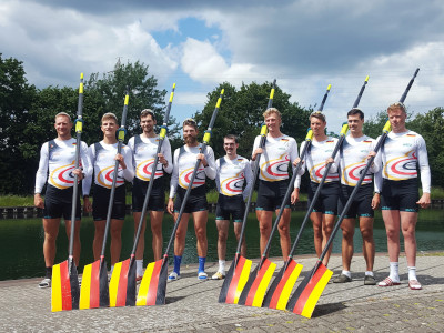 Simon Haible von der Rudergesellschaft Treis-Karden im Männer Vierer. Das Ziel, mit seiner am Stützpunkt Dortmund zusammengesetzten Mannschaft mit Emil Beck, Yannick Kiwitt und Finn Bontjer, eine der begehrten Medaillen zu erringen.