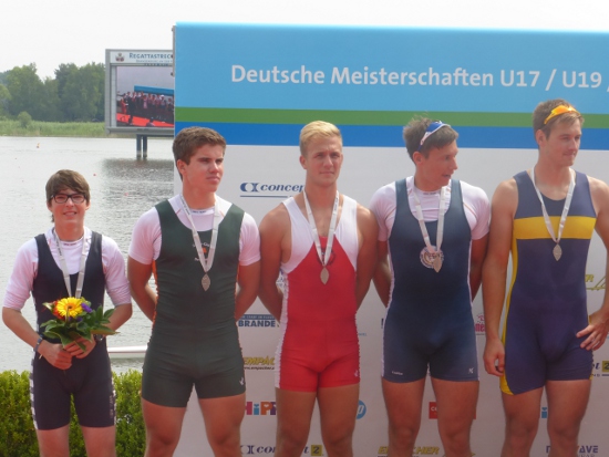 Silber im Männer Vierer mit Stm. Bfür Steuermann Jonas Wiesen (1. v. l.)