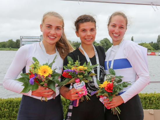 Gold im Leichtgewichts Juniorinnen Einer Bfür Svenja Klee (Mitte)Foto: Oliver Quickert, www.rudern.de