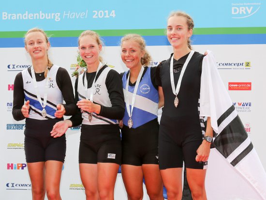 Bronze im Leichtgewichts Juniorinnen Doppelvierer A für Laura Nitzsche (1. v. r.)