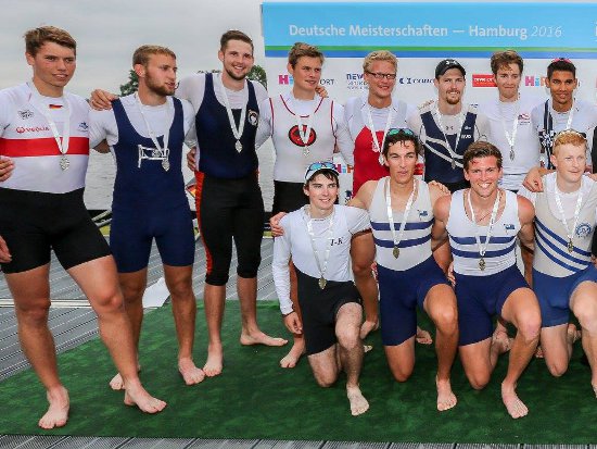 Gold im Männer Achter B für Jonas Wiesen (untere Reihe, 4. v. r.). Foto: Derlin/Seyb, www.rudern.de