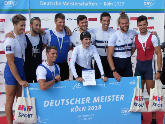 Gold im Männer Achter Bfür Steuermann Jonas Wiesen (Bildmitte)
