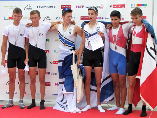 Silber im Leichtgewichts Junioren Doppelzweier Bfür Simon Haible und Julian Harwardt (1. und 2. v. l.)