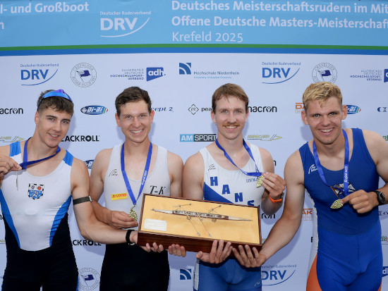 Gold im Männer Vierer ohne Steuermannfür Simon Haible (2. v. l.)
