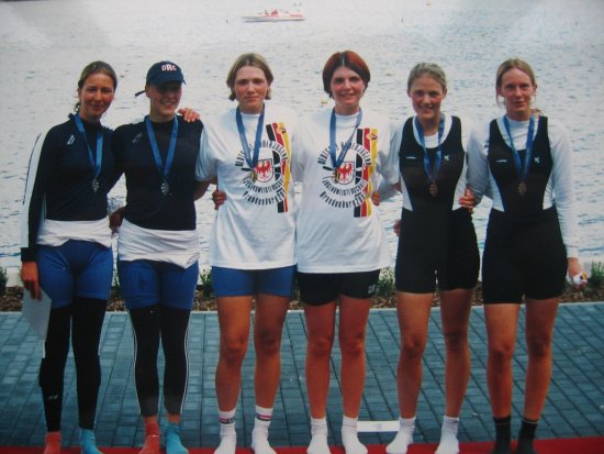 Bronze im Juniorinnen Zweier ohne Stf. Afür Julia Raven und Julia Rössel (1. und 2. v. Rechts)
