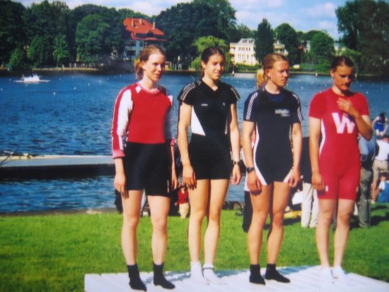 Gold im Leichtgewichts Frauen Doppelvierer ohne Stf.für Judith Zilliken (2. v. Links)