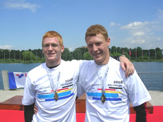 Gold im Junior Zweier ohne Stm. Afür Lukas Oberhausen (links) und Frederik Prigge (rechts).