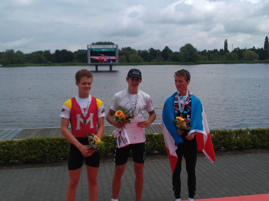 Gold im Leichtgewichts Junior Einer Bfür Alexander Diedrich (Mitte)